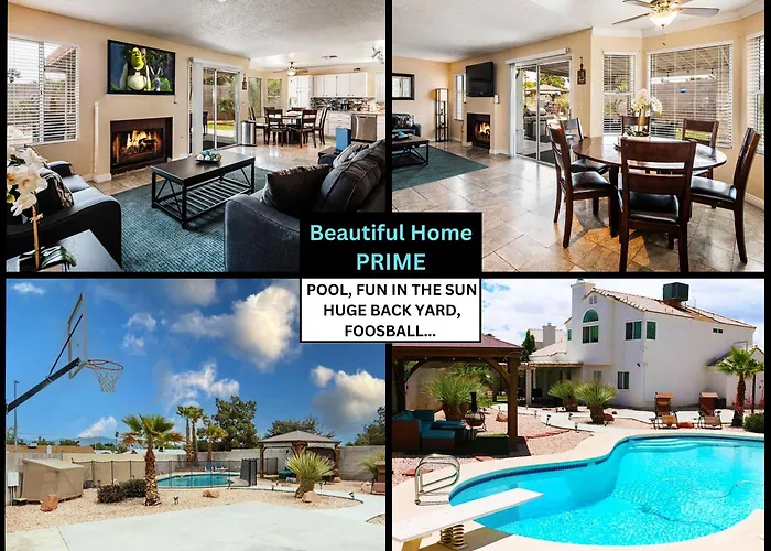 La villa Vegas Getaway, Pool, Basket Ball, Games, Cook dispose d'une cuisine équipée avec un four et un lave-vaisselle. Vous pourrez dîner dans Torrey Pines Pub, qui est dans une zone de 1 km. L'aéroport international McCarran de Las Vegas est à 21 minutes en voiture de cet établissement. Une terrasse est disponible sur place et vous pourrez pratiquer l'équitation, le ski alpin et le cyclisme à proximité de cette propriété. Cette villa Vegas Getaway, Pool, Basket Ball, Games, Cook dispose d'un espace de jeu et des barbecues.